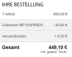 Bei mir wird leider der Preis von 509,96 € nach abzug des Gutscheins berechnet. Ist die Aktion schon vorbei?