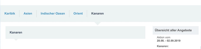 Euch stehen mehrere Reisegebiete zur Auswahl. Um zwischen den verschiedenen Zielgebieten zu wählen, müsst ihr im Reiter navigieren: