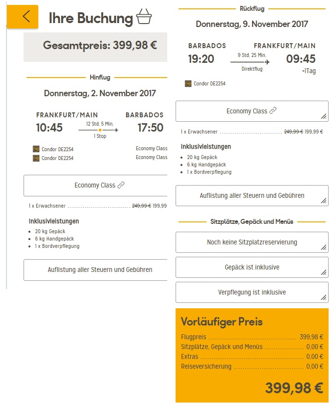 Alle Reisetermine für 199€ pro Flug (über die Condor-Website)