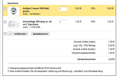 - mit kostenlosem WM Ball – Incentivenummer 187900081 (Eingabefeld im Warenkorb ganz unten)