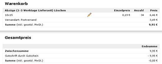 Bei mir auch, 31 Bilder im 11er Format belaufen sich auf genau 10,00 € ;)