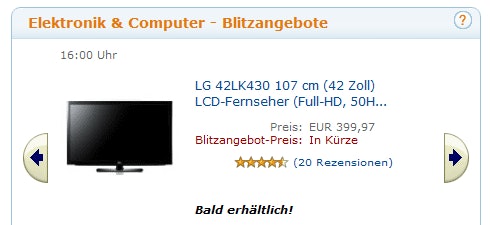 - LG 42LK430 ab 16 Uhr als Blitzangebot (Preisvergleich: 417)