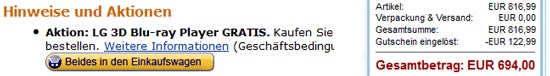 - LG 47LW579S + LG BD670 für 888 (nächster Preis: 949 + 123 = 1072) – auf „beides in den Warenkorb“ klicken