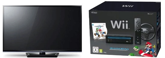 LG 60PA5500 + Wii Mario Kart Pack für 900€ - 60" 3D-Full-HD-Plasma Fernseher mit schwarzer Wii und Mario Kart