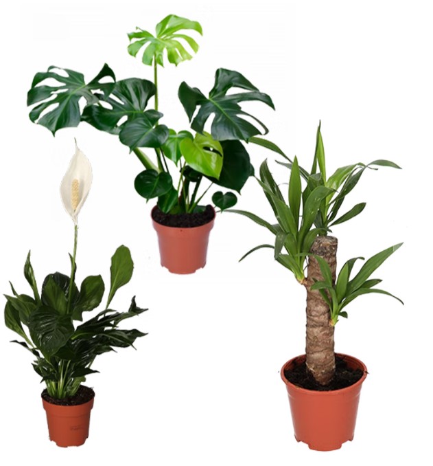 3er-Set Zimmerpflanzen für 26€ – Monstera (50-60cm), Yucca Palme (45-50cm) & Spathiphyllum (50-60cm)