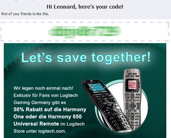 Den 50% Gutschein muss man sich als Logitech facebook Fan auf deren Fanpage generieren. Vorher sollte man aber noch schnell Schnäppchenfuchs Fan werden