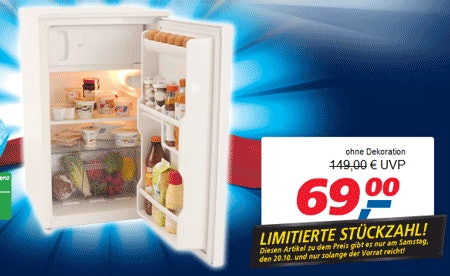 - Luxor Kühlschrank KS 1101 A+ für 79 – nur am Samstag, 20.10.12, in den real,- Fillialen (vergleichbare Geräte ab 122)