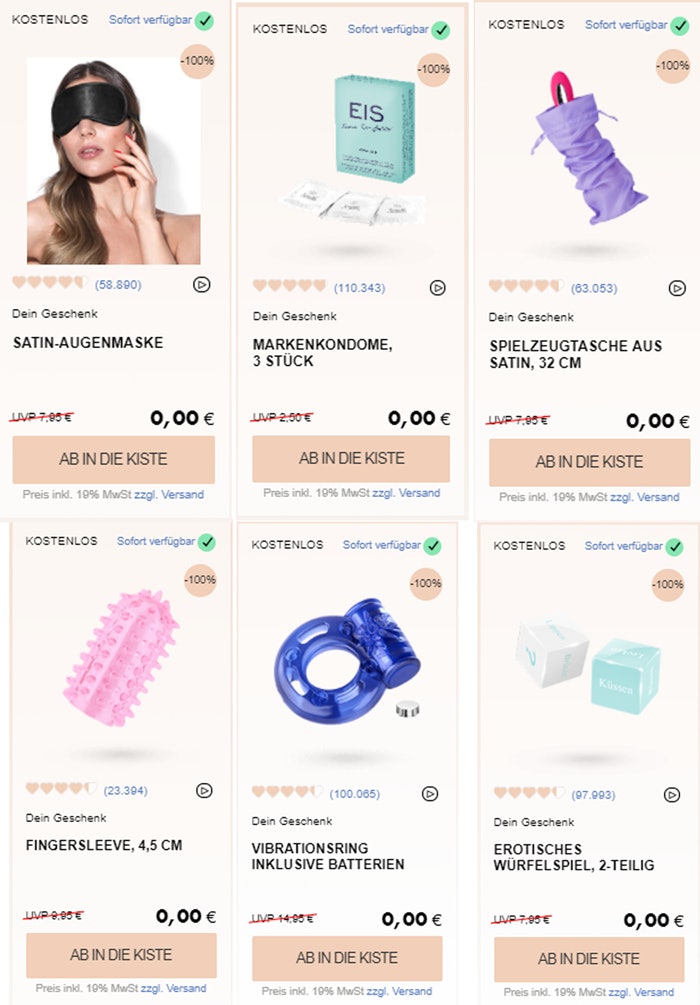 Günstige Erotikprodukte gibt es bei eis.de seit vielen Jahren. Manch einer fragt sich warum frau Dildos bereits für unter 10€ bestellen kann und ob die Qualität stimmt. Anders als die gängigen Sexshops, werden die Produkte aus der Fabrik ohne Zwischenhändler an eis.de geliefert und so mögliche Aufschläge vermieden. Neben den Produktpreis findet ihr zur Orientierung die unverbindliche Preisempfehlung, denn oft wird das Produkt zu diesem Preis woanders verkauft. Bei jeder Bestellung könnt ihr ein paar Gratisprodukte dazubestellen und der Versand ist ab 60€ frei.