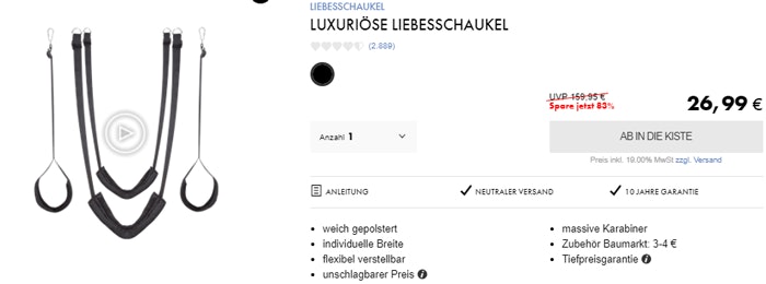 Die Liebesschaukel hat es mal für 7€ gegeben. Die ist echt gut und bring spaß in die Beziehung.