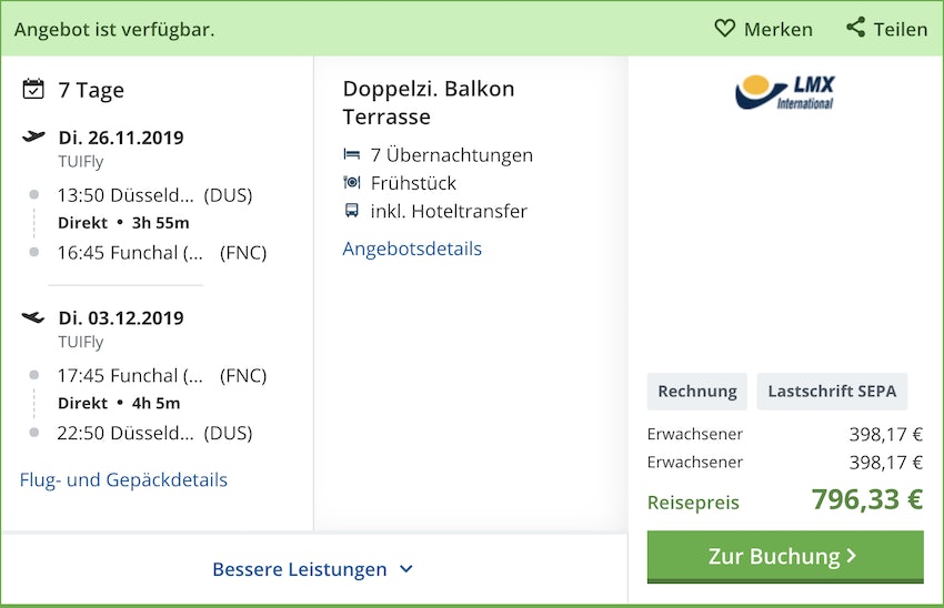 Beispielbuchung mit Flug ab Düsseldorf: 26. November – 3. Dezember 2019
