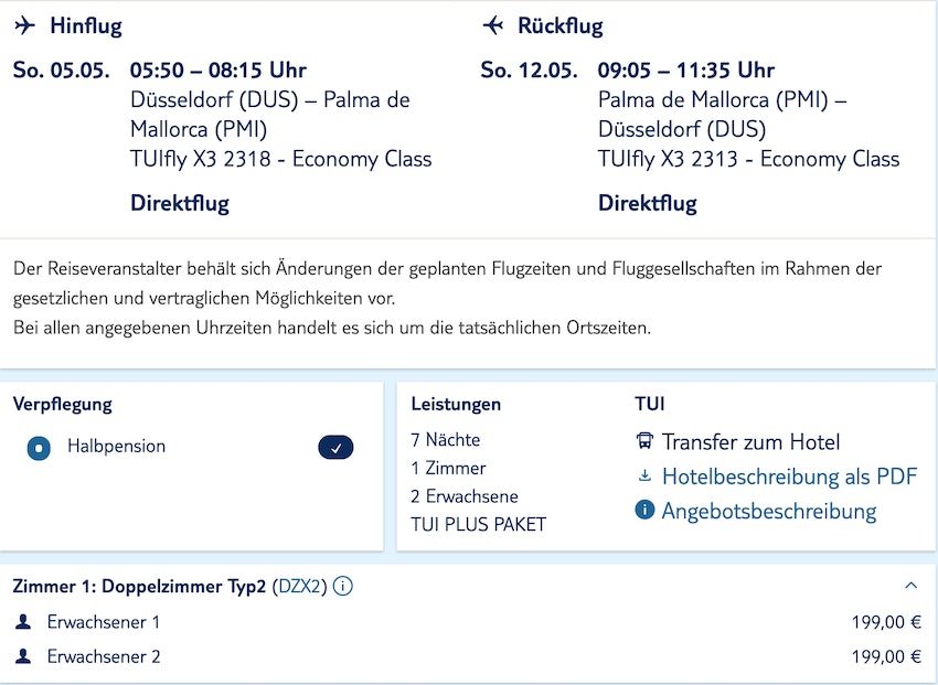 - Mallorca Urlaub: 1 Woche im 4*Hotel inkl. Halbpension, Transfer, Zug und Flügen ab 199€ bei tui.com
