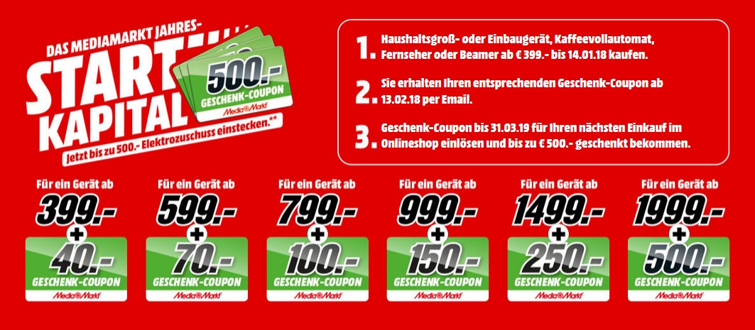 - Media Markt Jahres-Startkapital » Coupons im Wert von bis zu 500€ beim Kauf geschenkt