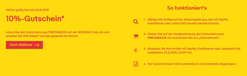 - 10% Rabatt auf das Medimax-Sortiment bei eBay
