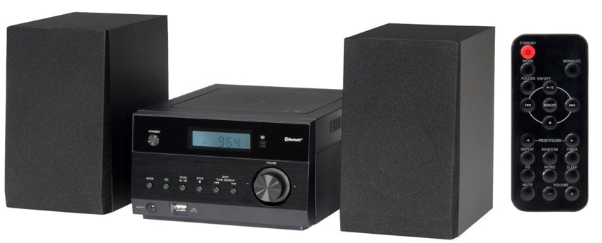 Bestehend aus: CD-Player, Tuner, Lautsprecher • Leistung: 2x 5W RMS • Tuner: UKW, DAB+ • Wiedergabeformate: CD-Audio, CD-R(W), MP3 • Audio-Anschlüsse: Kopfhörer (3.5mm) • Weitere Anschlüsse: USB, Bluetooth • Abmessungen Gerät (BxHxT): 450x107x250mm • Gewicht: 3.10kg • Besonderheiten: All-in-one-Gerät