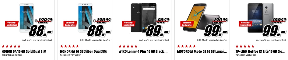 - Honor 6A Smartphone für 88€ inkl. Versand (Preisvergleich: 109€)