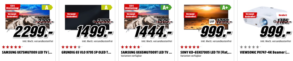 Neben den hier aufgeführten Produkten findet ihr zahlreiche weitere Artikel aus den Bereichen TV, Smartphone, PCs, Kameras, Haushalt, Speichermedien, Sport, Outdoor, Smart Home, Saugroboter und Haushalt. Ihr glaubt nicht, dass die Leute bei Mediamarkt richtig viel Zeugs rausgesucht haben, dann schaut einfach mal in, wie lange die Übersicht mit den Top-Produkten geworden ist. Wem das nicht reicht, der kann sich dann selbst auf den Weg zu Mediamarkt machen. Verlauft euch nicht.