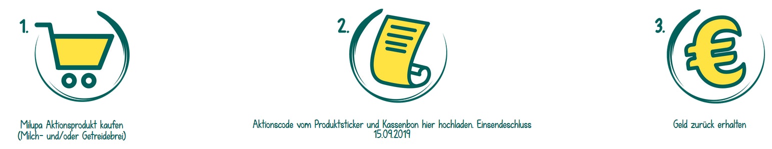 Ihr könnt euch sicher schon denken, wie diese Aktion abläuft, aber dennoch gibt es hier eine kurze Erklärung für die Neulinge: Ihr kauft bis zum 15. September eine Aktionspackung der Milupa-Breie mit Geld-zurück-Sticker und ladet den Kassenbon auf der Cashback-Seite hoch. Ein paar persönliche Angaben machen, die Bankverbindung eintragen und schon findet ihr ein paar Wochen später den Kaufbetrag auf eurem Konto wieder.