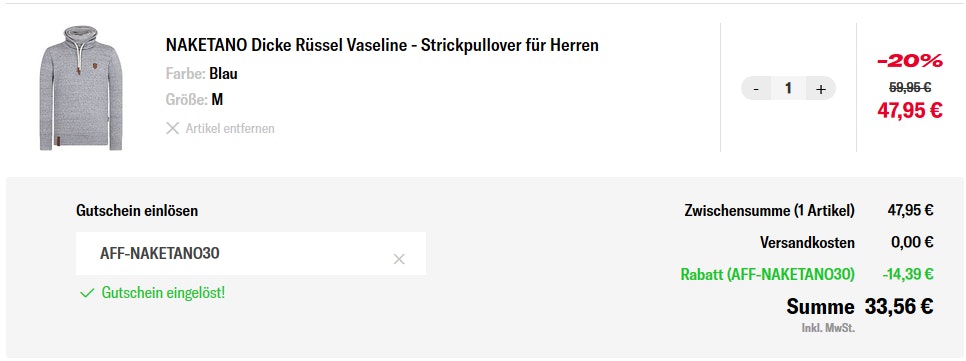 - Gutscheincode: AFF-NAKETANO30