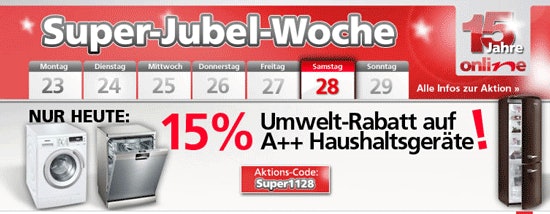 Neckermann bietet am heutigen Samstag 15% Rabatt auf alle A++ Haushaltsgeräte an. Also die besonders energiesparenden.