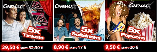 Dailydeal wagt nochmal was Neues und verkauft jetzt nicht nur Cinemaxs-Gutscheine für den Eintritt an sich, sondern auch für die Extras.
