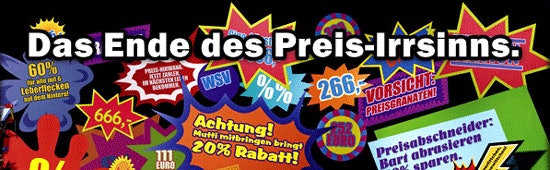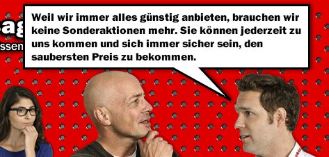 Wir machen Schluss mit dem Preisirrsinn. Schluss mit den Preisschlachten, mit den Schleuderpreisen, den Geizhalsangeboten. Das wollen die Menschen nicht mehr. Wir stoppen die überzogenen Preisaktionen.