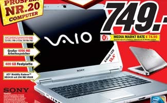Gestern ist der MediaMarkt Prospekt Nr. 20 zum Thema „Computer“ erschienen. Das Titelangebot ist das Sony Vaio VGN-NS31S/S Notebook für 749 .