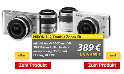 Nikon 1 J2 Kit 10-30 mm + 30-110 mm in silber für 389 inkl. Versand mit Code: „OHA2NIKON1J2“ (Preisvergleich: 424)oder in weiß zum gleichen Preis