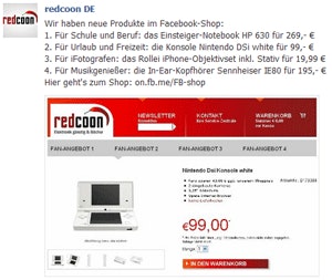Redcoon tobt sich aus und testet nach den Match-Deals auch noch Facebook als Verkaufsplattform. So gibt es 4 Angebote für Facebook Freunde der Seite, wovon ich eins interessant finde:
