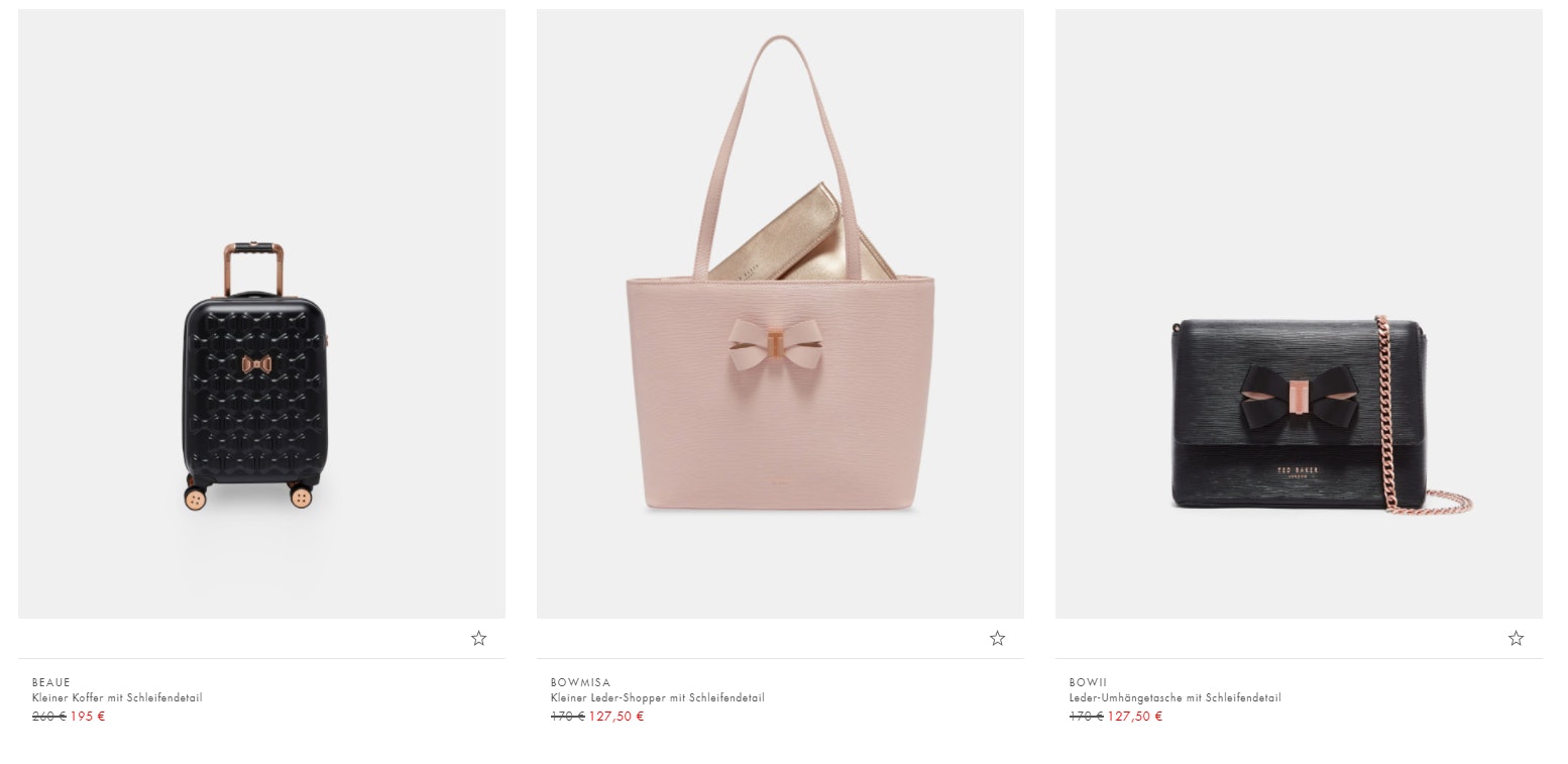 Ab heute bis zum 25.03.2018 könnt ihr euch 25% Rabatt auf Alles außer reduzierte Artikel bei Ted Baker sichern. Das Sortiment reicht von Designer-Kleidern, über Jacken bis hin zu tollen Uhren. Einen Gutscheincode benötigt ihr nicht, der Rabatt ist bereits an den Produkten ausgeschrieben.