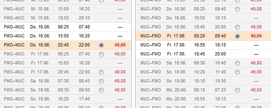 airberlin hat heute mal wieder eine Preisaktion. Hin- und Rückflug kosten pauschal 98 und dabei scheint es wirklich keine Rolle zu spielen, wie stark die Flüge schon gebucht sind. Normal schwanken die Flugpreise ja immer stark je nach Tageszeit. Bei diesem Angebot spielt das aber keine Rolle und man ist pauschal für 49 dabei, wenn man heute bucht.