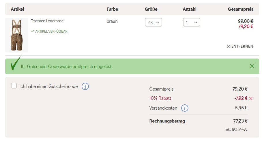 - Trachten Lederhose für 77,23€ inkl. Versand (vorher: 104,95€)