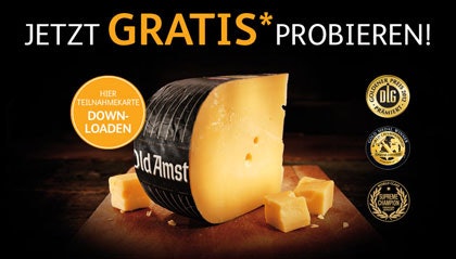 Wer den guten Old Amsterdam Käse häufig im Supermarkt sieht und dann meist doch zu teuer findet, hat jetzt die Gelegenheit, ihn kostenlos zu probieren: