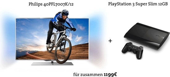 - Philips 40PFL7007K mit PlayStation 3 Super Slim 12GB für 1199 inkl. Versand (Preisvergleich: 1199 + 226 = 1425)