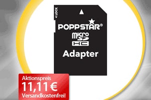 - Poppstar micro SDHC Card 16GB inkl. SD Adapter (Class 6) für 11,11 mit Gutscheincode: OHA1POPP16 (vergleichbare Speicherkarten ab 14,33)
