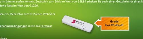 Pro7 UMTS-Stick gratis beim Kauf eines Windows 7 PCs - Cashback-Aktion