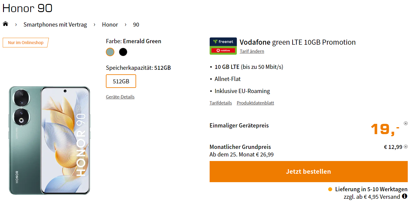 - Tarifdetails: 24 Monate Laufzeit | 20 GB LTE50 | Allnet- & SMS-Flat | 10€ Wechselbonus bei Rufnummernmitnahme* | Keine Anschlussgebühr**