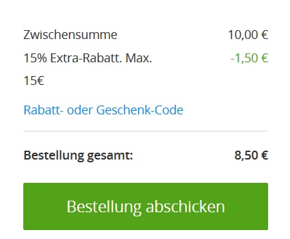 - Als Neukunde anmelden und den 15% Gutscheincode nutzen: NEU15