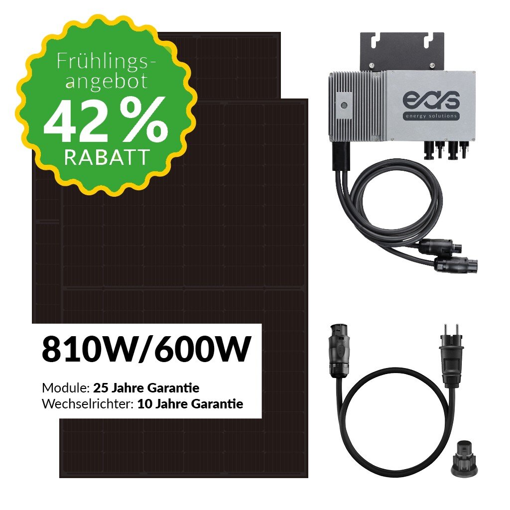 - Balkonkraftwerk-Set 2x 405W (810W) + Deye SUN800 & Kabel für 559€ bei dealclub.de (Preisvergleich: 630€)