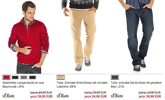 [update datum=2]Bei s.Oliver läuft die Aktion mit den 20% Extra-Rabatt auf SALE-Ware nur noch heute. Wohl die beste Gelegenheit im Jahr, um s.Oliver Klamotten zu kaufen.[/update]