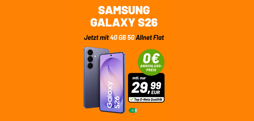 - Samsung Galaxy S26 & 50GB Telekom-Tarif nur 39,95€ mtl. bei handyhelden.de