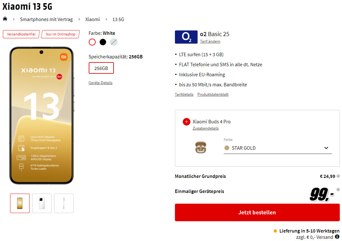 - 1€ Zuzahlung für das Smartphone | 39,99€ Anschlussgebühr | 4,95€ Versandkosten
