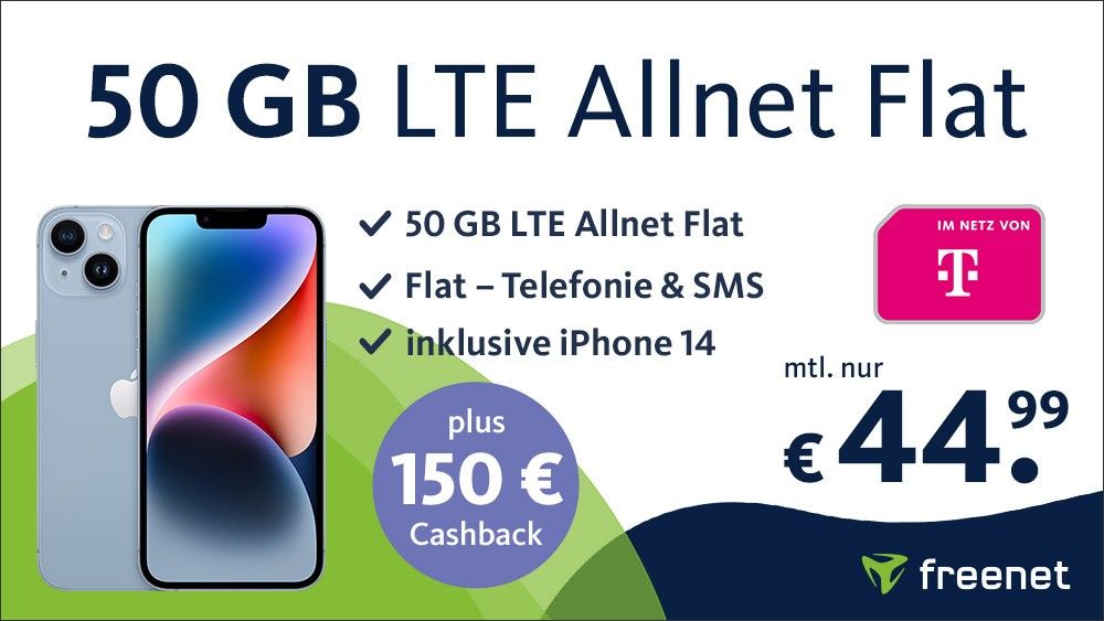 - Internet: 23 GB LTE mit bis zu 50 Mbit/s