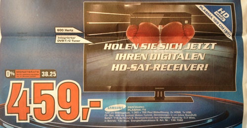 - Samsung PS51D450 für 459 (Preisvergleich: 523, aber Innova24 hat auch gekontert (0,10 mehr als Amazon))