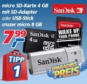 Real verkauft ab heute einen Sandisk cruzer micro Skin USB-Stick mit 8GB Speicherplatz für nur 7,99 . (Marktsuche auf Real.de) Im Preisvergleich zahlt man mindestens 13 Euro (18 inkl. Versandkosten).