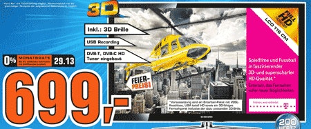 - Samsung 46C750 – 46″ Full HD 3D-Fernseher inkl. Brille für 699 (Preisvergleich: 799) – ist ein super Fernseher, ausführlicher Schnäppchenfuchs-Artikel