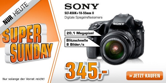 - Sony SLT-A58K+18-55mm 20 MP für 345 (Preisvergleich: 424) – ausführlicher Artikel