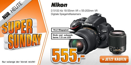 Nikon D 5100+18-55VR+55-200VR Objektiv für 555 (Preisvergleich: 635)