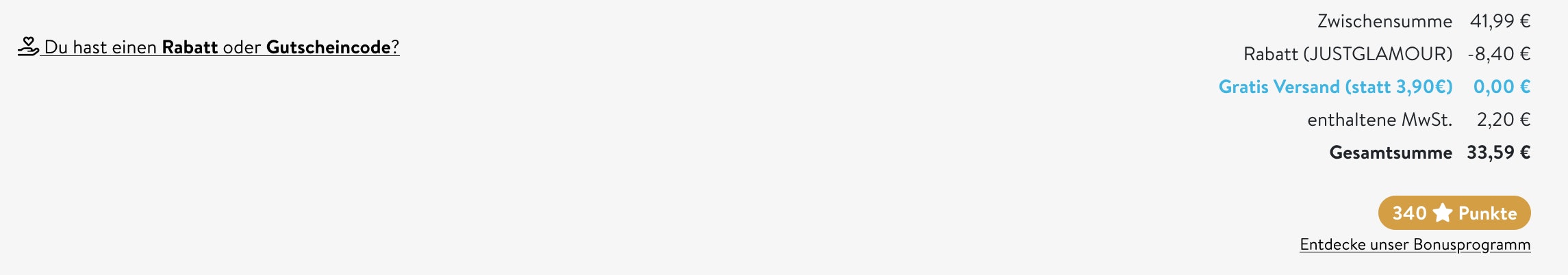- Gutscheincode: JUSTGLAMOUR – gültig bis zum 11. April 2021