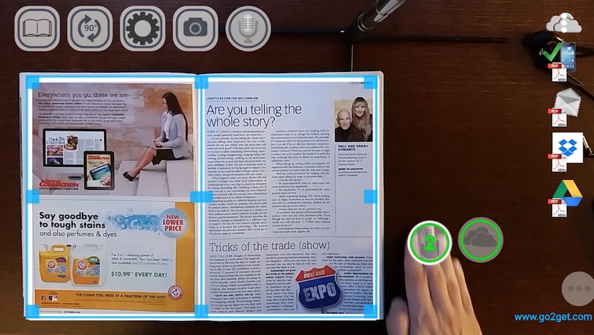 Der Clou der App: Ihr braucht für die Benutzung nicht auf dem Display herumwischen. Bevor ist etwas einscannt richtet ihr den Scanbereich ein. Zusätzlich könnt ihr die Position von VR-Tasten festlegen. Klingt komisch? Ist ganz einfach. Die App erkennt, wenn ihr in dem Bereich einer platzierten Taste aktiv seid. Dann wird die Tastenfunktion automatisch ausgeführt. Alternativ könnt ihr auch die Tasten eures Smartphones verwenden. Komfortabler wird das Arbeiten durch den SkanStick. Diesen bekommt ihr direkt beim Hersteller. Stolze 40$ muss euch das gute Stück allerdings wert sein.