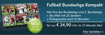 - Sky Welt + Bundesliga-Sparpaket für 24,90 – mit Preisgarantie über komplette Vertragslaufzeit – 49 Servicegebühr